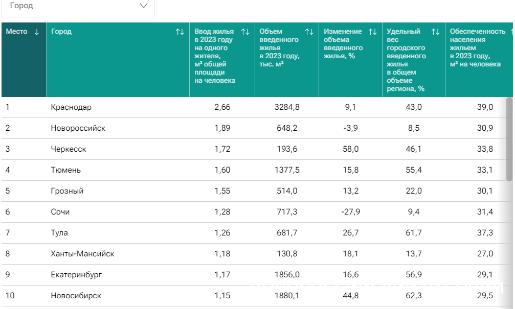 Новороссийск уступает, но немного, — в городе-герое за 2023 год ввели 648,2 тыс. квадратных метров жилья, на одного человека – 1,89 квадратов. За год объем ввода снизился на 3,9 процента.