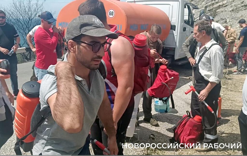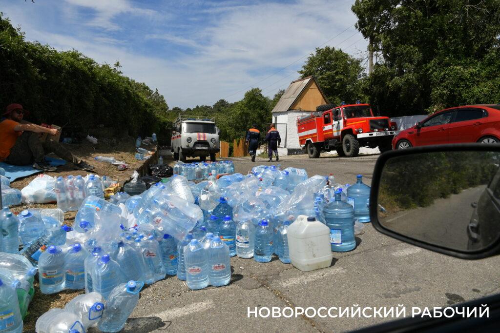 Вдоль всей дороги, на обочинах, встречаются импровизированные склады воды – питьевой и для заправки индивидуальных ранцев тех, кто отправляется в горы, проливать локализованный пожар.