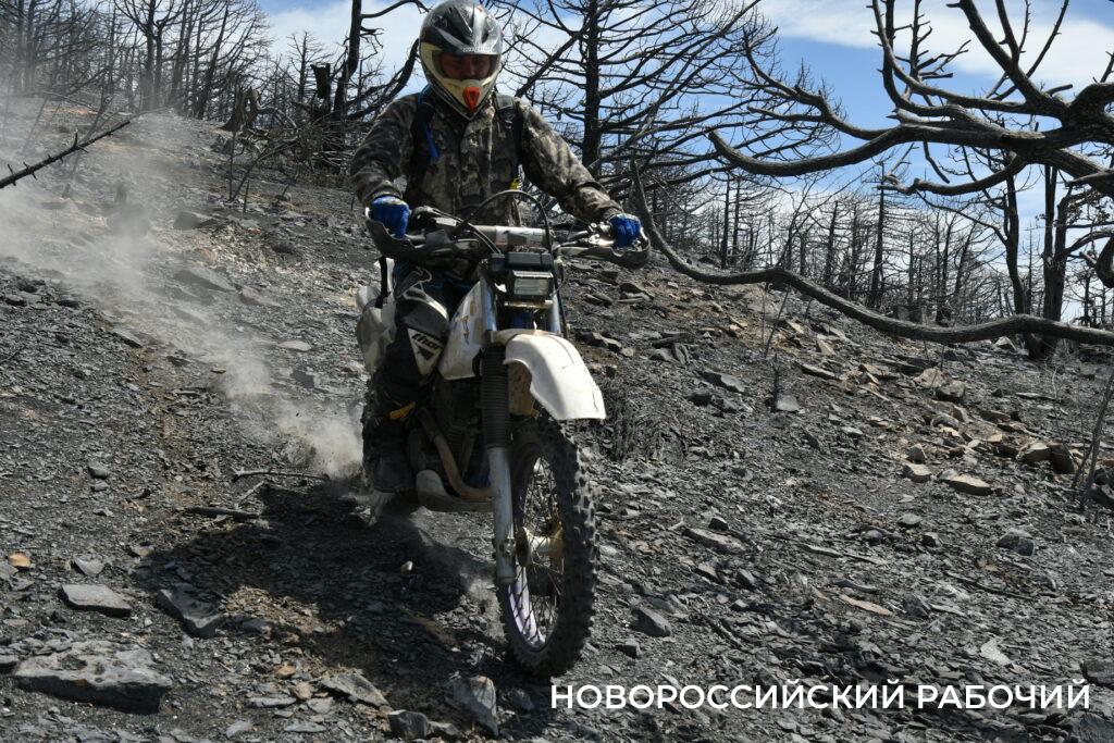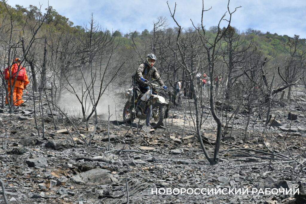 В хутор Дюрсо сейчас проезд разрешен только местным жителям, спецтехнике и добровольцам, которые на своих мотоциклах и квадроциклах вызвались помогать в тушении пожара.