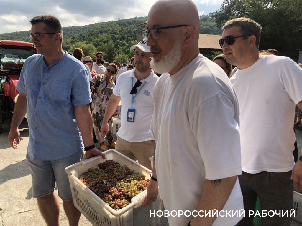 — Низкий поклон виноградарям, спасибо тем, кто приехал на уборку, — обратился к собравшимся директор ООО «Абрау-Дюрсо» Андрей Ермаков. — Спасибо тем, кто работает в поле, особенно в этом году, на максимальной жаре. Огромное напряжение, но никто не сдается. Потянули начало уборки, дальше тоже все будет хорошо, другого варианта быть не может!