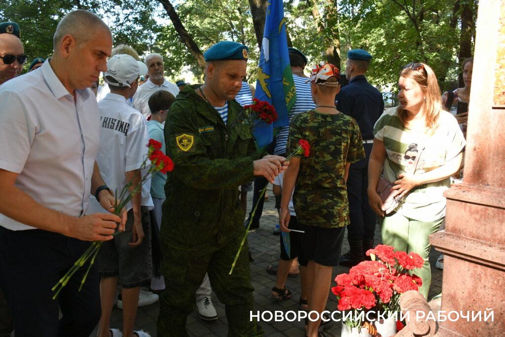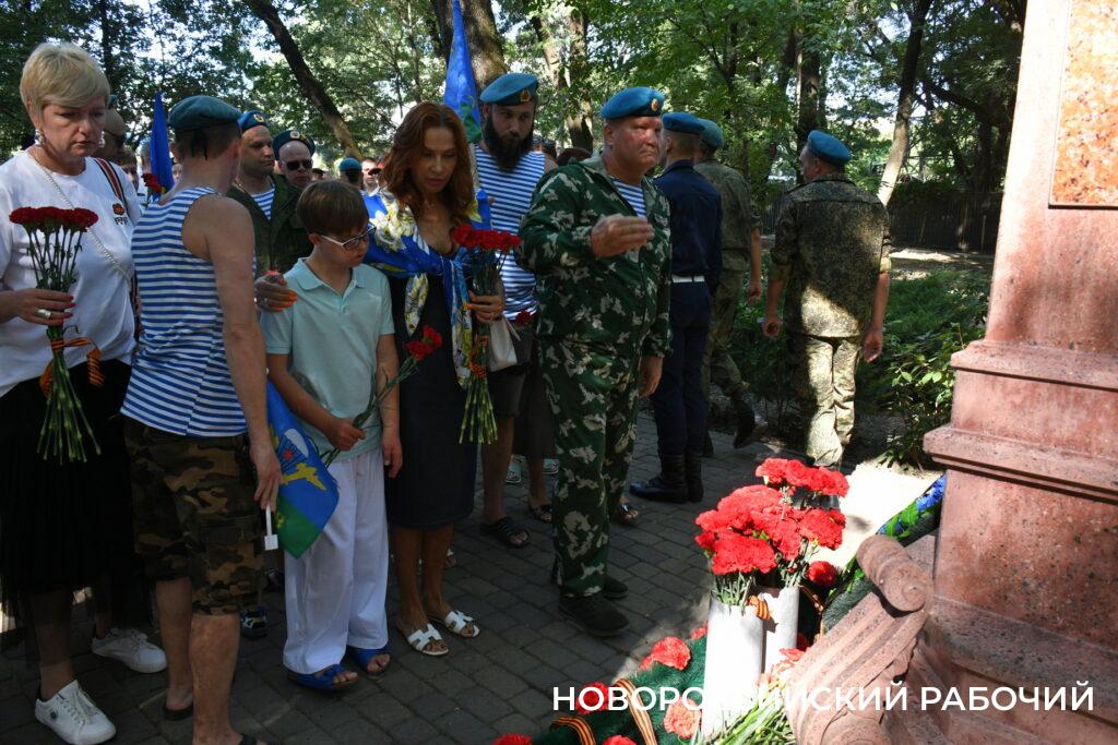 В сквере Маргелова, где стоит памятник основателю ВДВ, собрались все, кто считает себя причастным к празднику. Пришли с семьями, детьми, ветераны войск — с внуками. Среди тех, кто возложил цветы и те, кто участвовал и участвует в СВО. Обязательный атрибут – полосатая майка и голубой берет.