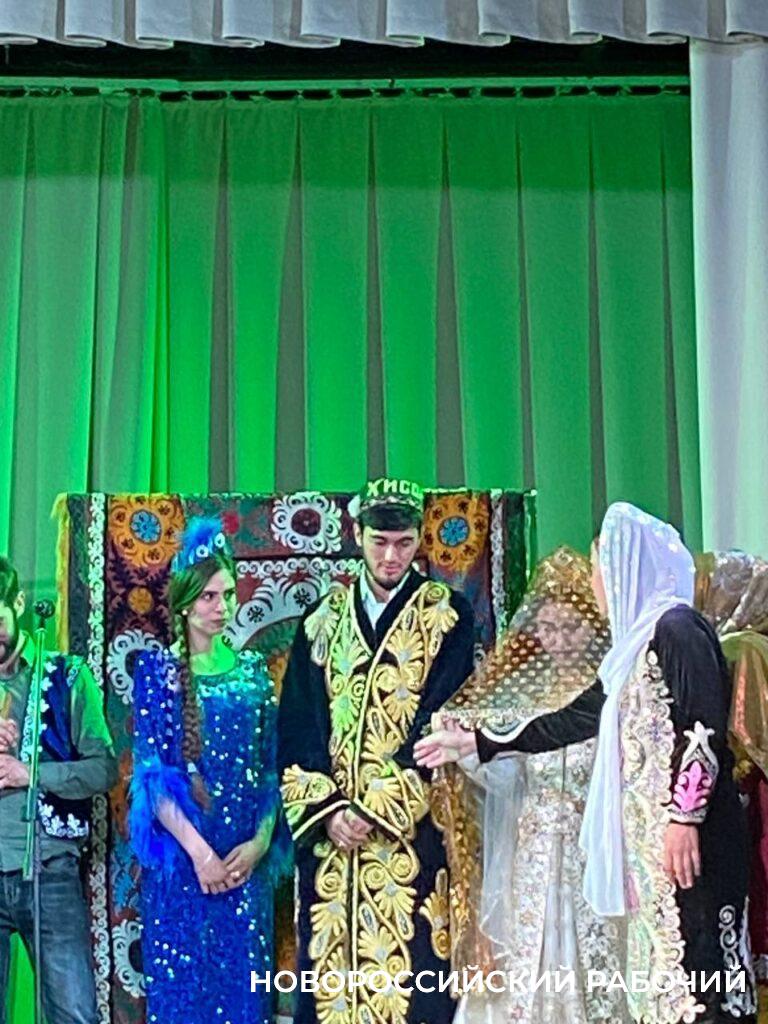 Зрители смотрели на свадебную церемонию как на хороший спектакль. И действительно, срежессировано все было достойно. Специально для этого вечера из Краснодара приехал национальный ансамбль «Гарибон», его часто приглашают играть на свадьбах.