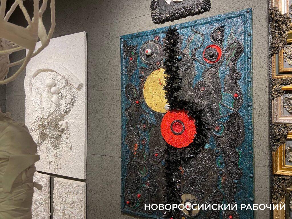 Показательна работа «Мусор – в золото», которая показывает, как на сине-черном полотне появляются золотые слитки. Автор не скрывает, что ее работы порой хорошо покупаются ценителями, галеристами.