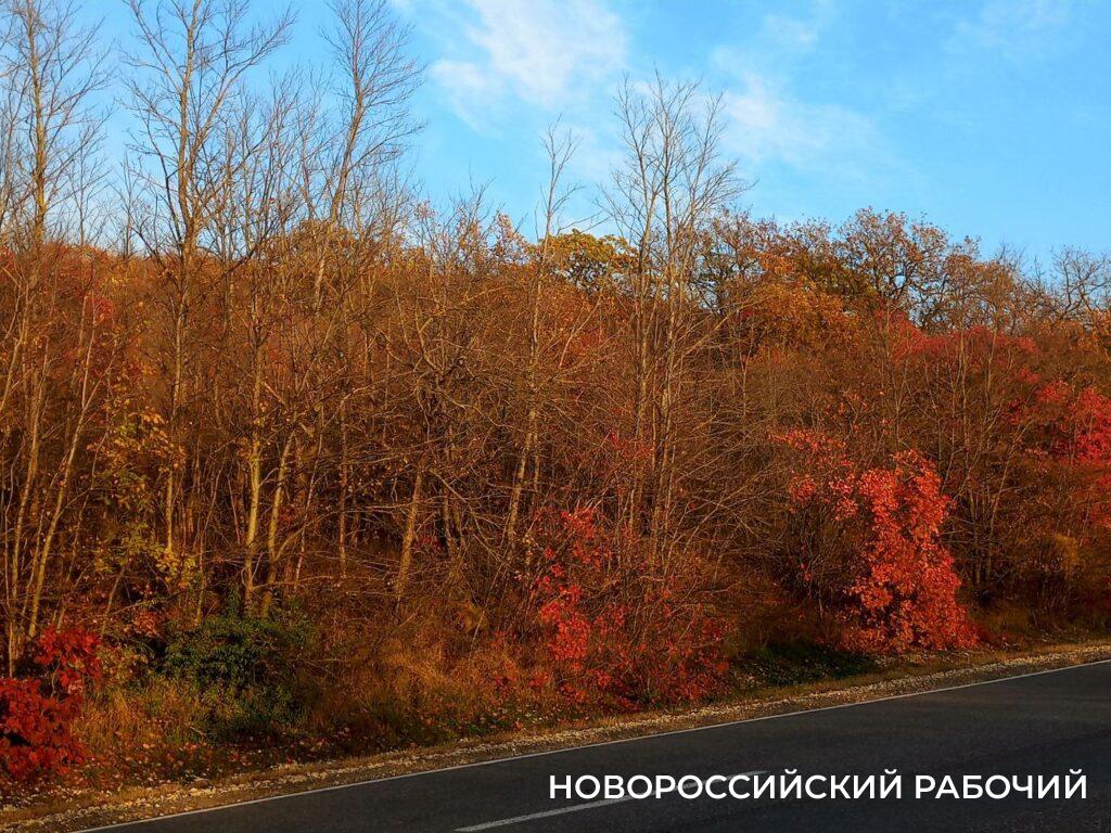 Впрочем, кое-где багрянец уступает золотому покрову. Гледичии и акации роняют мелкую листву как золотые монетки. Желтеют тополиные листья. На дубах в районе Семигорского и Натухаевской (и не только там) постепенно опадают коричнево-желтые резные листы…