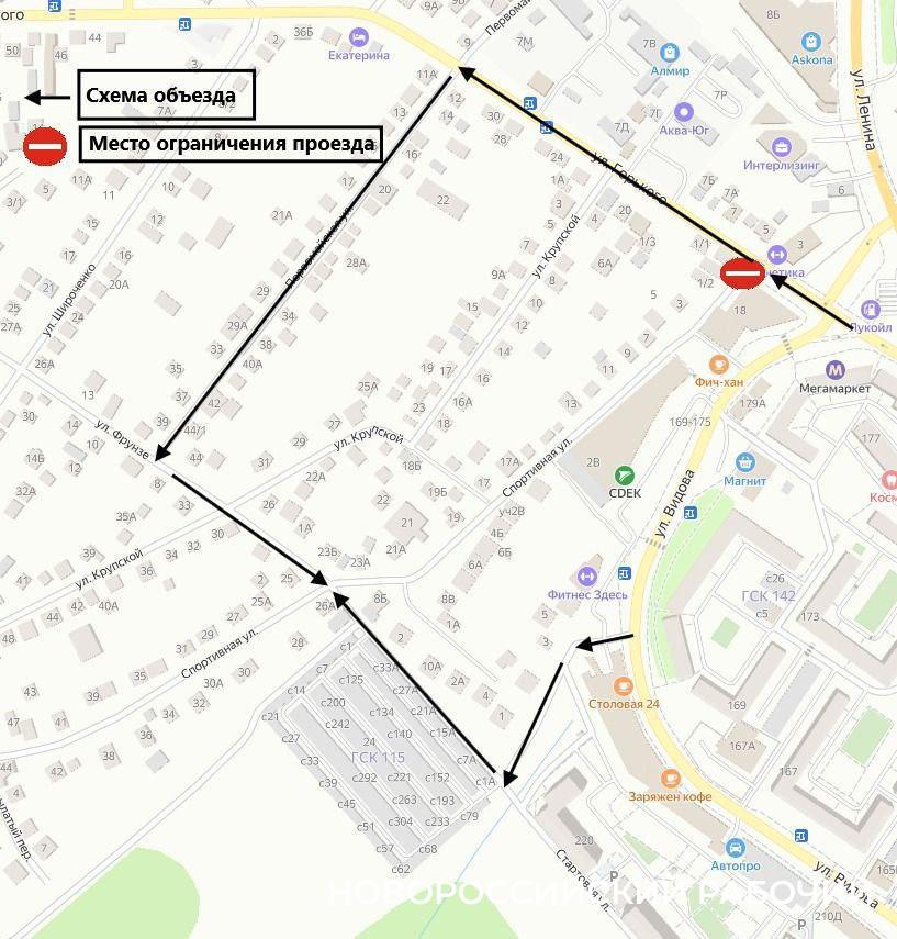 С 02 по 06 декабря в районе проведения работ по реконструкции развязки Анапское шоссе — улица Горького будет перекрыт заезд на улицу Спортивную с улицы Горького.