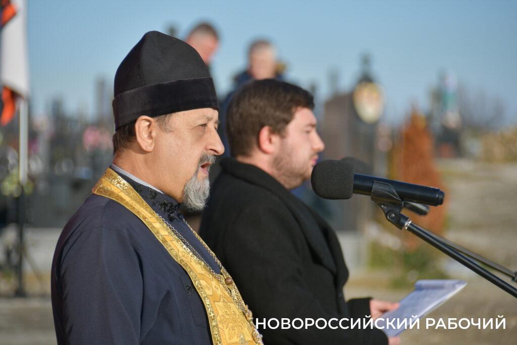 Торжественное открытие Стены памяти началось с молебна, который провел протоиерей отец Василий. От лица главы города Новороссийска Андрея Кравченко к собравшимся обратился его заместитель Александр Яменсков.