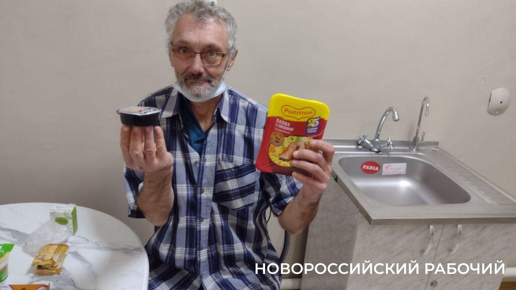Эдуард осмотрен, весело спускается в отделение. Затем по-домашнему кричит, спрашивая у персонала, где пульт от телевизора. И я уже слышу голос из динамика телеведущего Андрея Малахова. Спускаюсь в отделение, чтобы посмотреть, как обустраивается Эдуард в ночлежке. А постоялец на кухне уже вскрывает сухой паек, в составе которого «дошик» с говядиной, куриный паштет, разводное пюре.