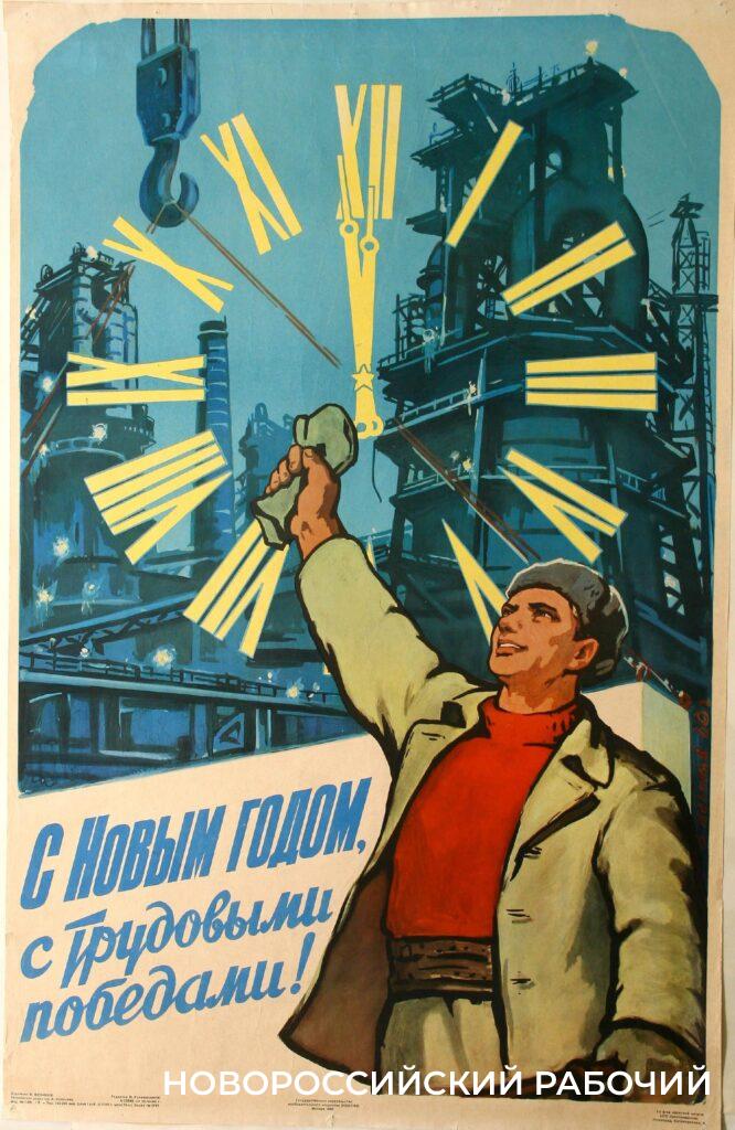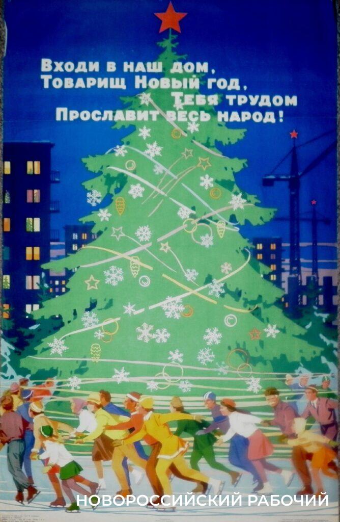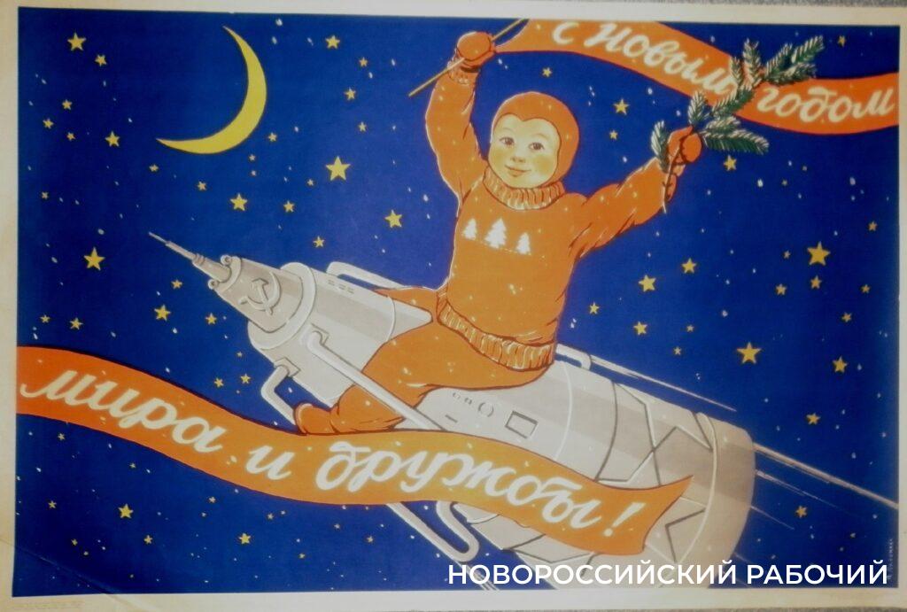 Плакаты были атрибутом новогоднего праздника и полвека спустя. Известно, что в Новороссийске в послевоенное время ими украшали даже рынки, когда устраивали предпраздничную торговлю. На плакатах писали лозунги. Как замечают в музее, в первой половине 50-х годов они были выполнены в стиле соцреализма, потом появились предвестники космической эры. На них изображали космонавтов, ракеты. В новом году желали трудовых успехов.