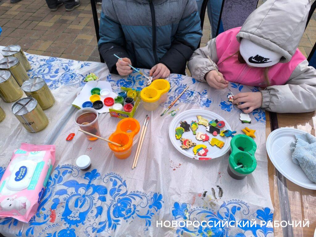 Для ребятишек провели несколько мастер-классов. Мальчишки и девчонки с удовольствием расписывали деревянные фигурки, из которых в последствие без труда можно сделать популярные сейчас мини-брошки, стоит лишь приклеить булавочку. Также детям предложили разукрасить фигурки из соленого теста. Мамы и папы с улыбками наблюдали за своими чадами и не ругались, если в творческом порыве капли краски летели на штаны и куртки.