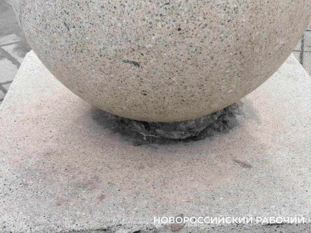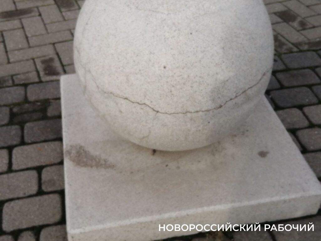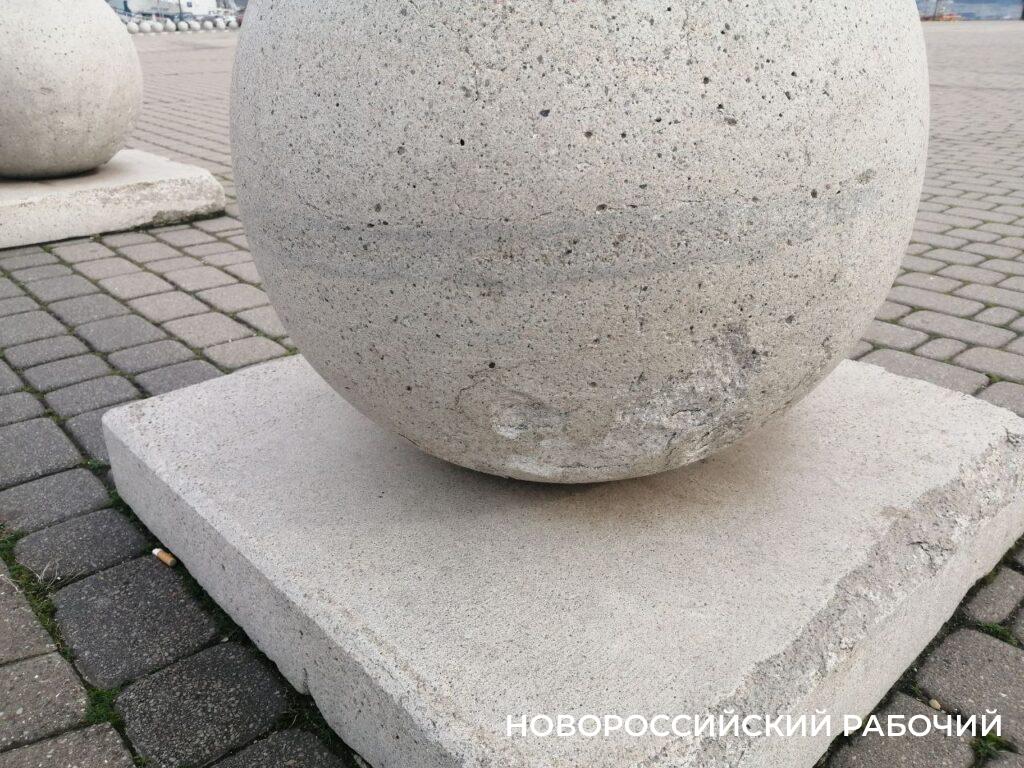 Если внимательно присмотреться, заметно, что многие шары были сдвинуты с родного места и коммунальщикам пришлось возвращать их на постамент и дополнительно укреплять. На некоторых шарах, ставших за эти годы тоже своеобразной достопримечательностью Новороссийска, заметны сколы и трещины.