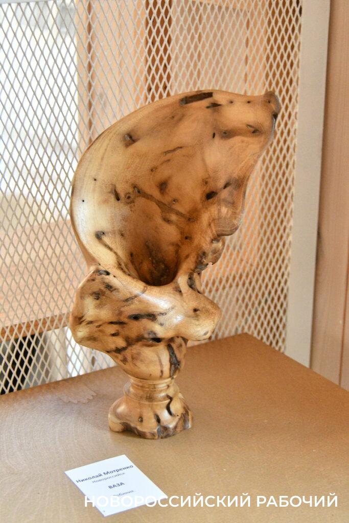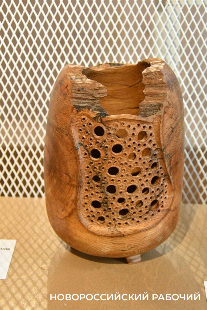 Сейчас у мастеров модно обыгрывать даже грибок, который разъедает дерево и дает таким образом красивый, причудливый узор. Таких работ много у мастера из Крымска Дмитрия Лисицына. Именно ему больше всех задавали вопросы посетители выставки.