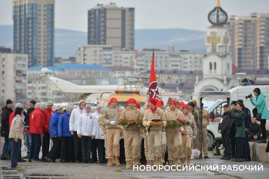 В 12 часов с крейсера-музея «Михаил Кутузов» прозвучал «Выстрел памяти». Этот ритуал проводится ежегодно в рамках военно-патриотической акции «Операция «Бескозырка». Он является символом того, что славные подвиги воинов-малоземельцев не забыты и навсегда останутся в сердцах жителей города-героя Новороссийска.