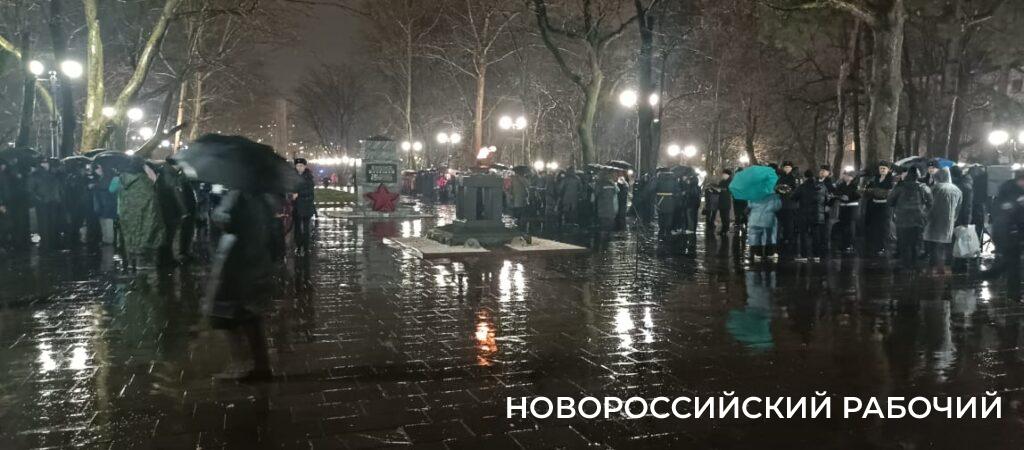 — Внимание! Говорит Новороссийск! Говорит город-герой Новороссийск! В этот памятный февральский вечер мы вновь здесь, на Малой земле. 82 года назад, в штормовую ночь 1943 года, на этом берегу совершили свой беспримерный подвиг моряки-десантники, легендарные защитники огненного плацдарма. 225 дней в ожесточенных боях черноморцы удерживали этот плацдарм, названный ими «Малой землей», — это слова невозможно слушать без трепета.