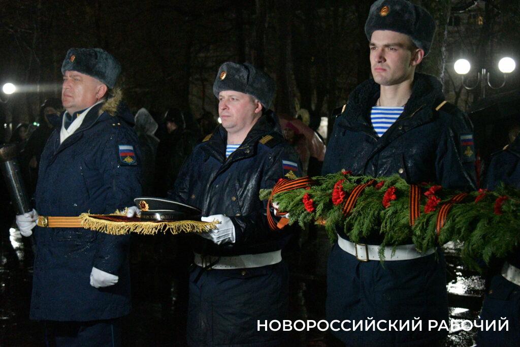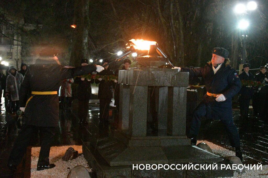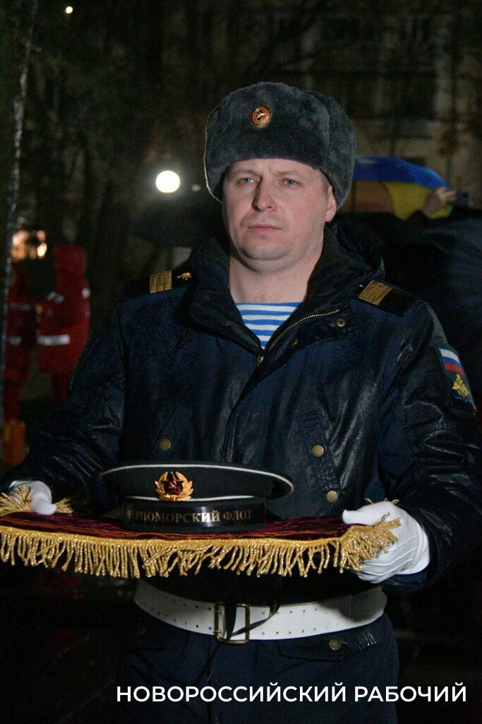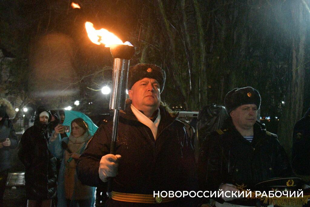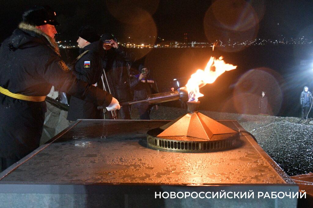 В этом году зажег огонь Вечной славы заместитель начальника Новороссийской военно-морской базы, участник СВО Сергей Ларчук.