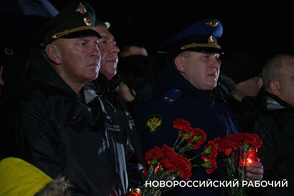 Проникновенные слова собравшимся сказали заместитель губернатора Краснодарского края Александр Власов, глава города-героя Новороссийска Андрей Кравченко, заместитель председателя комитета Государственной Думы по экономической политике Сергей Алтухов, генерал-лейтенант, временно исполняющий обязанности командующего войсками Южного военного округа Владимир Кочетков, контр-адмирал, командующий Новороссийской военно-морской базой Виктор Кочемазов и активист «Движения Первых» Александр Броницкий.
