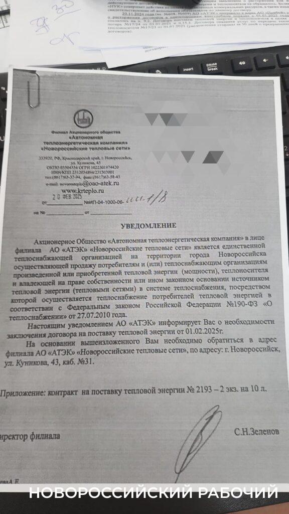 — В 2021-м году между АО «Прибой» и АО АТЭК был заключен договор, по которому мы через сети АТЭК поставляли тепловую энергию конечным абонентам. АТЭК мы платим за пользование сетью, он нам, в свою очередь, должен компенсировать теплопотери и утечки, — прокомментировала «Новороссийскому рабочему» ситуацию генеральный директор АО «Прибой» Анна Франтова. – Теперь АТЭК уведомляет нас, что договор он расторгает в одностороннем порядке, но на наш взгляд это противоречит законодательству об оказании коммунальных услуг, ведь договоры у абонентов заключены именно с нами. Жалобы на действия АТЭК мы уже направили в прокуратуру, администрацию, УЖКХ.