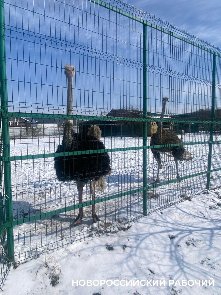 И страусы тоже не прочь совершить морозную прогулку. Для верблюдов и альпака такая погода привычна в их естественных условиях обитания.