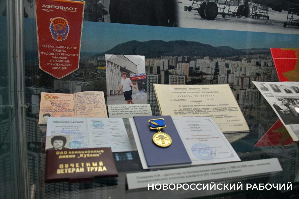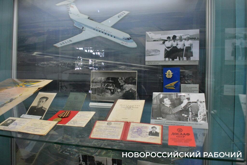 Славную историю аэропорта Новороссийска, с достаточно драматичным концом, вспоминали пришедшие на открытие небольшой выставки в Новороссийском историческом музее-заповеднике. Ее по крупицам собирала научный сотрудник Лариса Александровна Колбасина. Именно по крупицам, ведь коллектив новороссийского аэропорта был совсем небольшим – 60 человек специалистов, обеспечивающих его работу, и 20 человек охраны. Но раритеты есть – трудовая книжка легендарного директора аэропорта Александра Егоровича Мамонова, фотографии культурно-развлекательных поездок дружного коллектива, организованных профсоюзом, синий китель – в таких ходили сотрудники предприятия, техплан аэропорта.