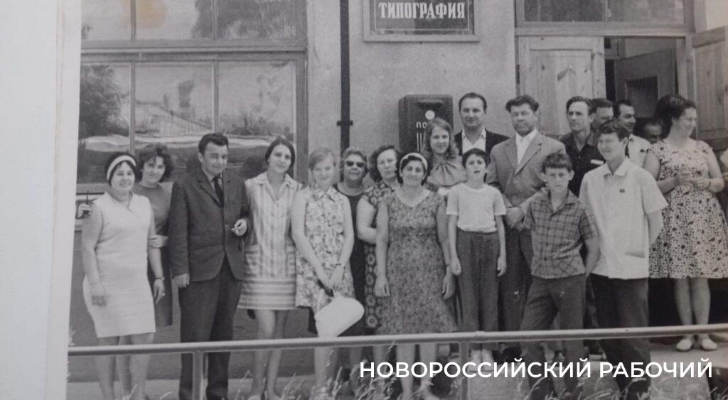 Редакция «Новороссийского рабочего» у дверей типографии. 1970 годы.