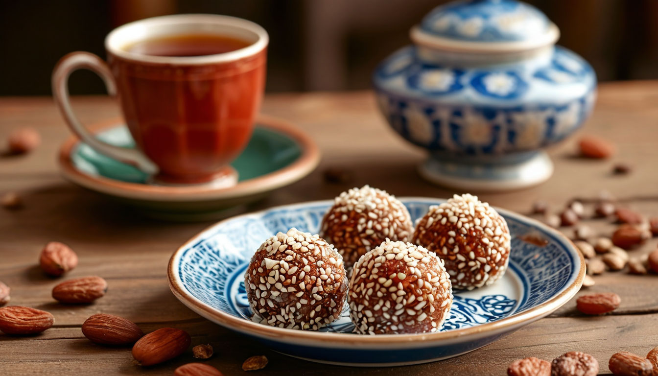 Ингредиенты: финики – 300 г, орехи – 100 г, какао – 1 ст. л. Для обсыпки: кокосовая стружка, кунжут — по вкусу.