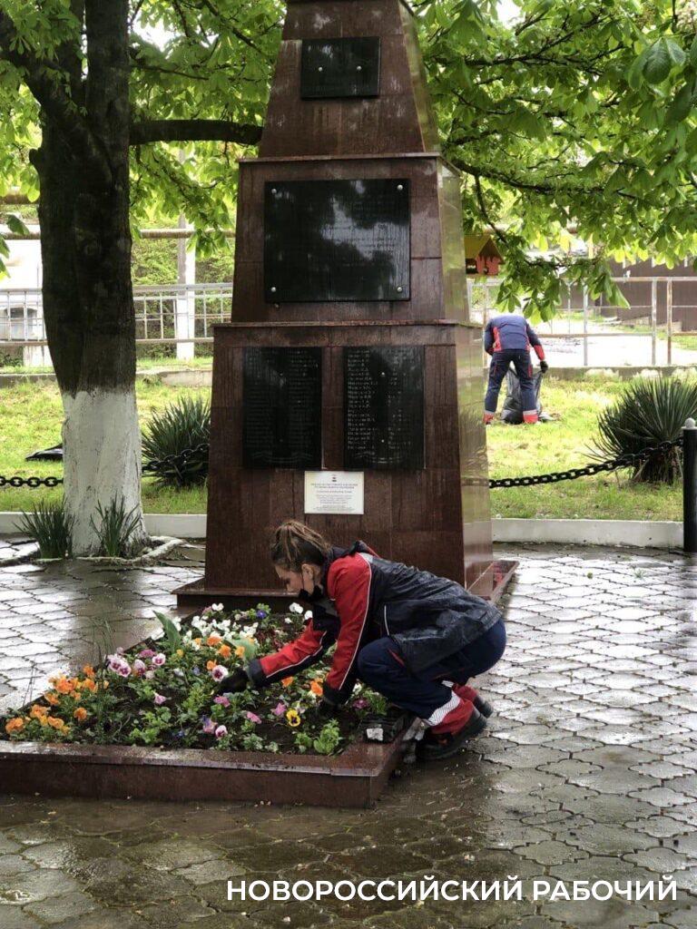 Убравшись на берегу, все отправились к братской могиле в селе Глебовском.  Старший экономист Яна Руденко и административный помощник Анна Склянова у подножия памятника заботливо сажали цветы. Эта работа, сказали они, помогает им чувствовать себя частью команды КТК-Р и нашей большой страны, гордиться тем, что общество не забывает тех, кто сложил голову, сражаясь за Родину. Здесь же активно трудились депутат городской Думы Екатерина Демченко, сотрудники администрации сельского округа, все вместе они убрали сорняки, старую листву, навели порядок вокруг памятника.