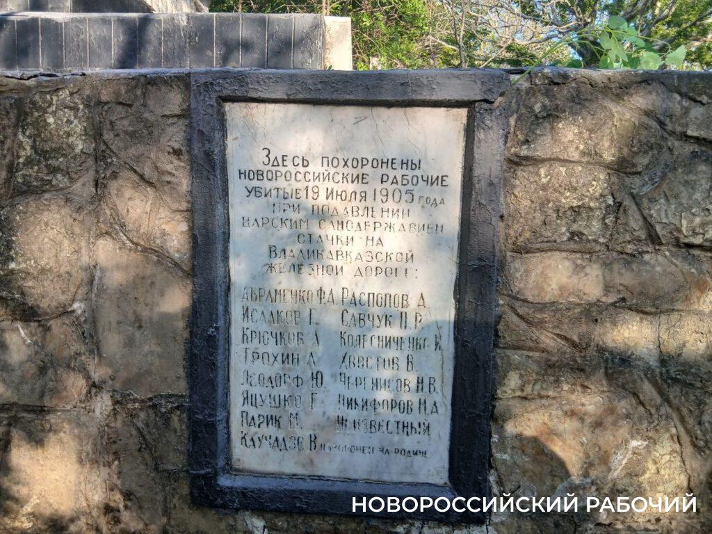 Благодаря мемориалу на центральной аллее, не забудутся имена рабочих, убитых 19 июля 1905 года при подавлении стачки на Владикавказской железной дороге. Их 14, правда, один неизвестный…