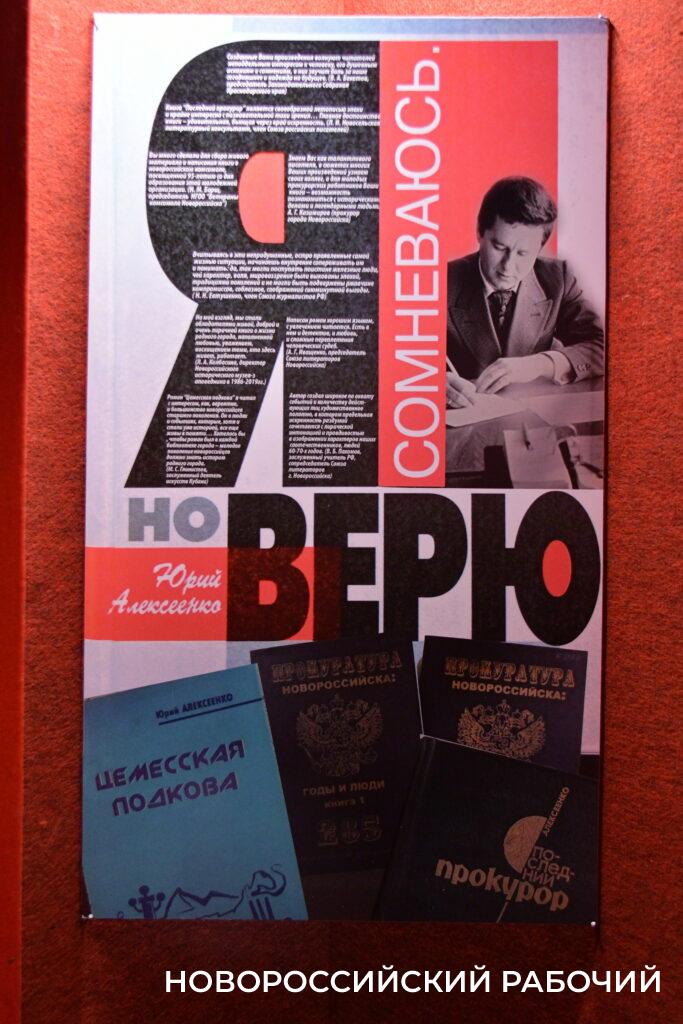 Юрий Алексеенко — один из авторов книги “Новороссийский комсомол” (2015). Герои его произведений – люди, которые живут среди нас. Автор опирался на конкретные исторические события, информацию добывал из первых рук, а также работал в городском архиве, в фондах Новороссийского исторического музея-заповедника.