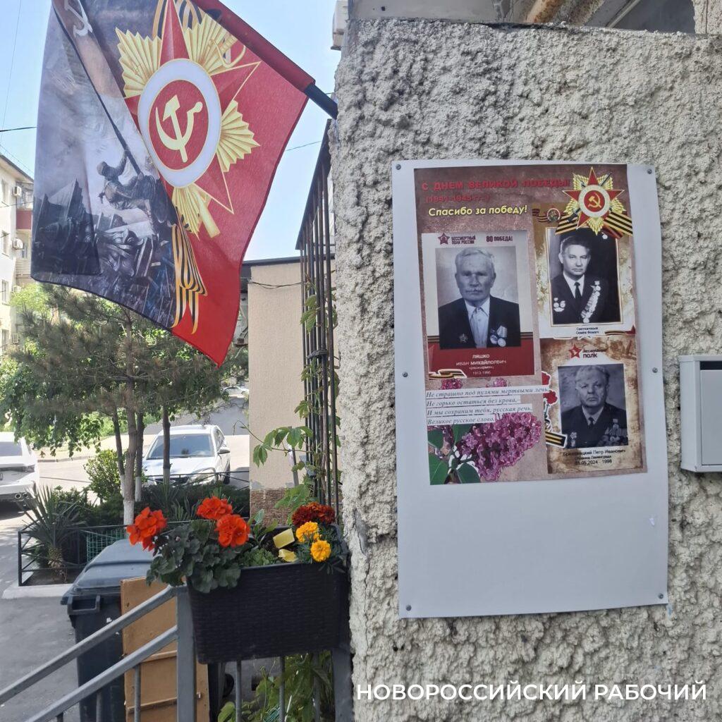 — Сегодня, когда из соображений безопасности, мы не можем выйти на улицу и пройти в Бессмертном полку со своими героями, приходится искать варианты. Посоветовались с соседями, собрали фотографии, все красиво оформили. Закупили флаги и установили у каждого подъезда, — рассказала одна из жительниц дома Наталья. – Так приятно, что люди останавливаются, читают. Особенно такая акция важна для подрастающего поколения.