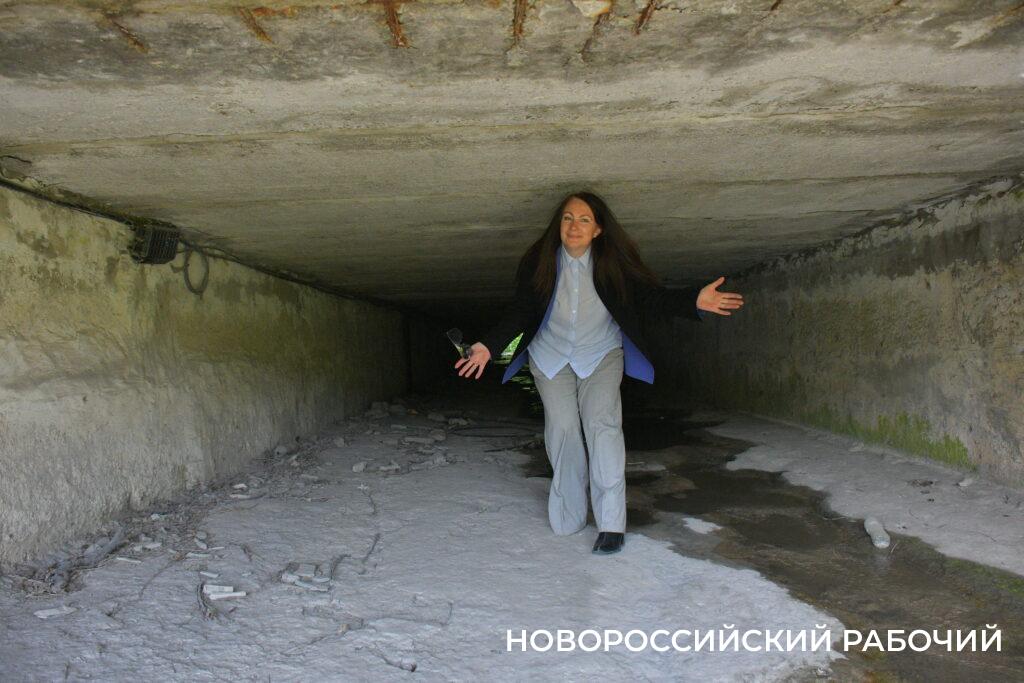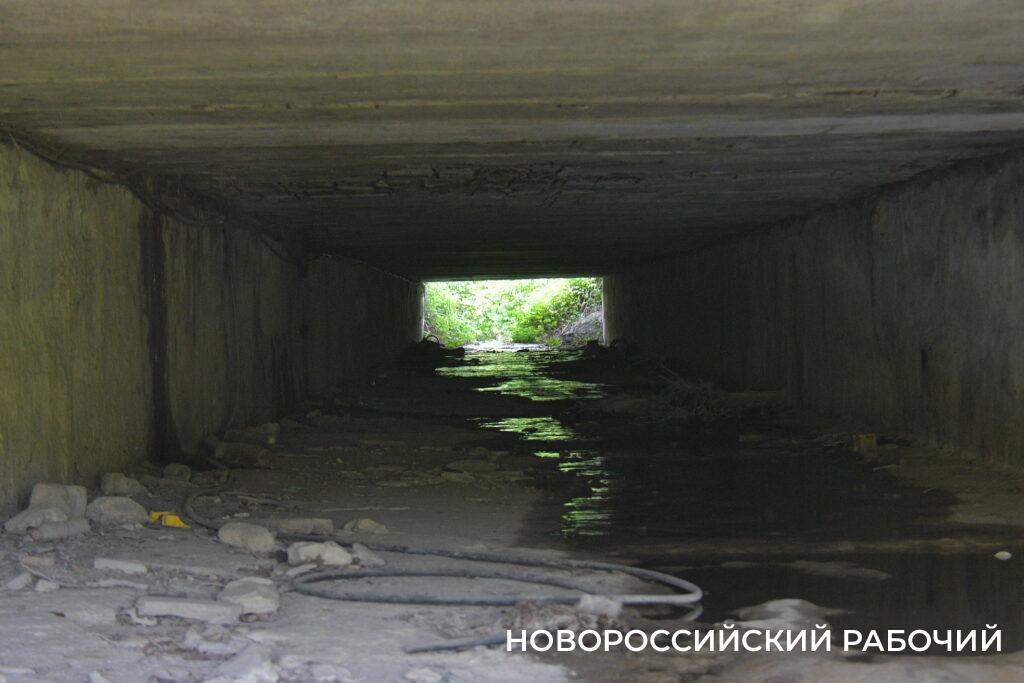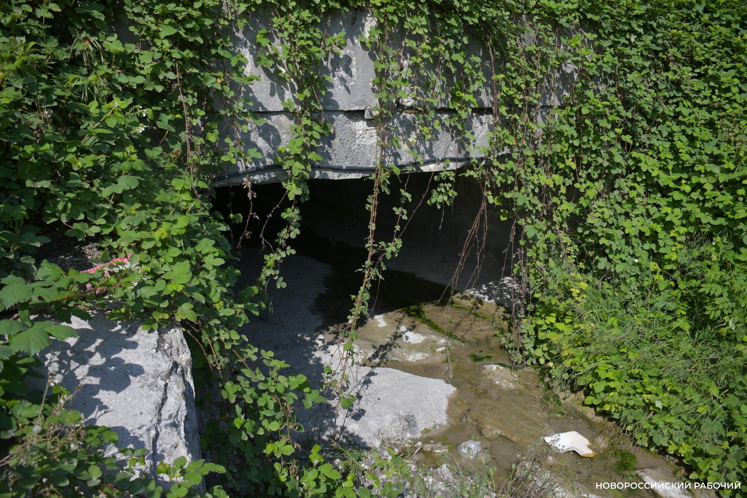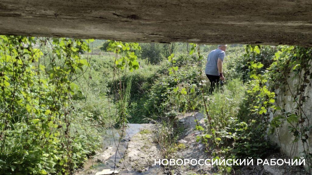 Оказываемся в канаве. Брррр. Наверное, здесь много змей. Массивная бетонная арка – это вход в убежище. Мы попадаем под обычный бетонный мост. Просто бетонный мост. Больше — ничего. Вот и все убежище. Думаю, что 17 мая прошлого года, когда дроны атаковали Новороссийск, это место могло стать отличным убежищем для дальнобойщиков. Потому что такой слой бетона дроном не возьмешь. Интересно, в ночь на 3 мая 2025 года им кто-то пользовался? Присутствия людей не видно — всюду чисто.
