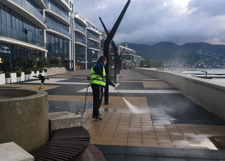 - разнорабочие, для мойки плиточного покрытия на Набережной, на территории морского вокзала.
