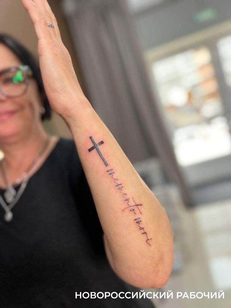 – Одна дама сделала себе подарок на 60-летие, заказав надпись на латинском языке «Memento mori». А потом вошла во вкус и сделала еще три татушки в разных местах, – рассказывает мне Лиза, показывая фотографию этой клиентки. Женщина в 60 лет выглядит потрясающе! Мастер подтверждает: любительница тату занимается физкультурой, моржует. Кожа у нее в отличном состоянии – упругая и подтянутая.