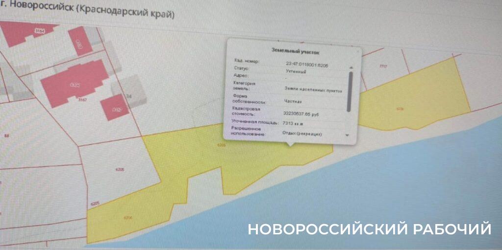 Речь идет о земельном участке с кадастровым номером 23:47:0118001:6206, расположенном в Южном районе города, в районе коттеджного поселка «Панорама». Площадь данного участка 7313 кв.м., вид разрешенного использования «отдых, рекреация».