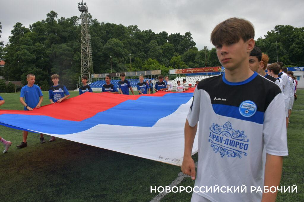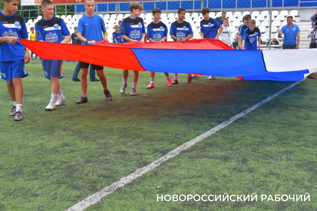 Задача была не из легких. Больше 100 спортсменов и полотнище 6 х 50 метров! У ребят не с первого раза получается. Приходится раз за разом выстраиваться в две ровные линии, снова и снова аккуратно сворачивать полотно, чтоб потом его быстро и красиво развернуть. Никто не ропщет. Все терпеливо подчиняются старшим и стараются сделать все так, чтобы триколор развернулся так, как надо — красиво и торжественно.