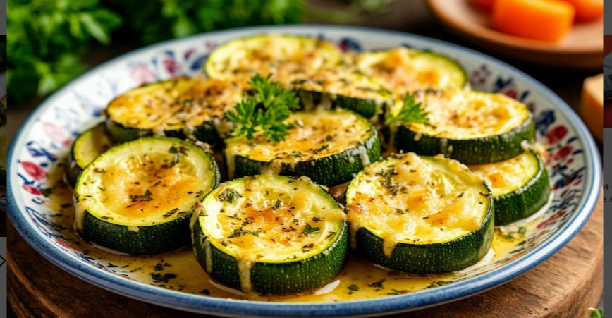 Противень смазать растительным маслом. Выложить цукини в один ряд или внахлест. На каждый кружочек положить сметану с укропом, посыпать тертым сыром.