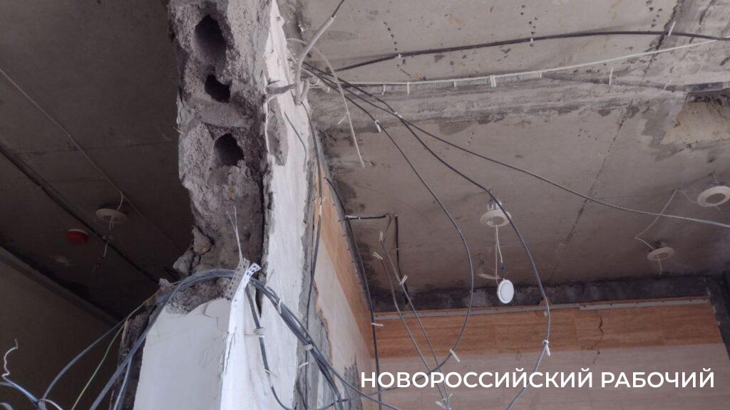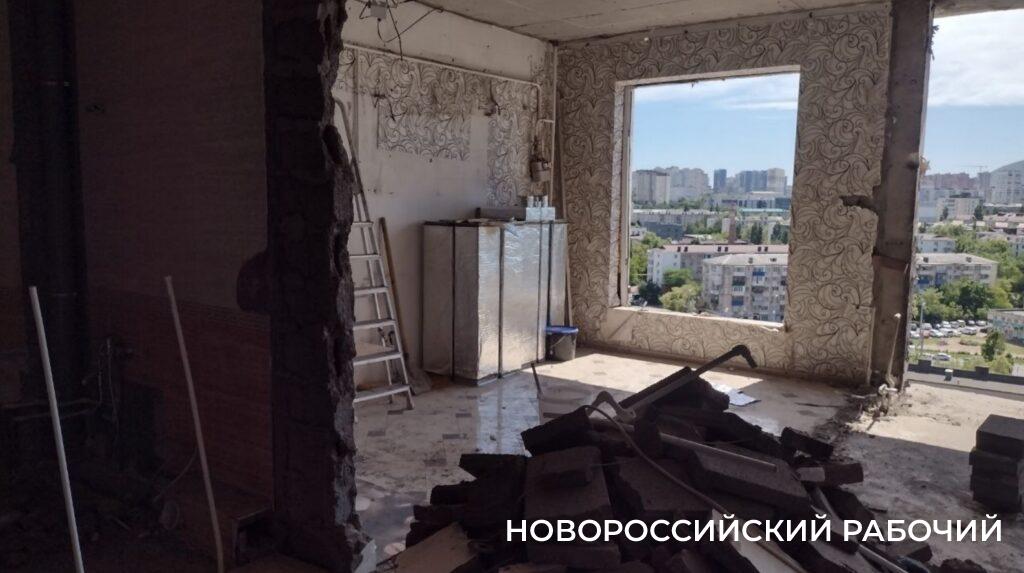 Корреспондент «Новороссийского рабочего» Мария Ананьева была у пострадавших почти месяц назад. Меня пригласили, чтобы как-то сдвинуть с мертвой точки ситуацию с дырой в фасаде дома. Я увидела своими глазами ту самую квартиру №183, куда влетел дрон. Стены, развернутой на гипермаркет «Магнит», там нет вообще, также полностью разрушена стена, отделяющая эту квартиру от другой, развернутой на улицу Суворовскую. Внутри все перемолото, будто гигантским миксером. Владельцы квартиры, как смогли, сгребли в кучу куски рваного бетона. Но самостоятельно отремонтировать фасад — это им не под силу.