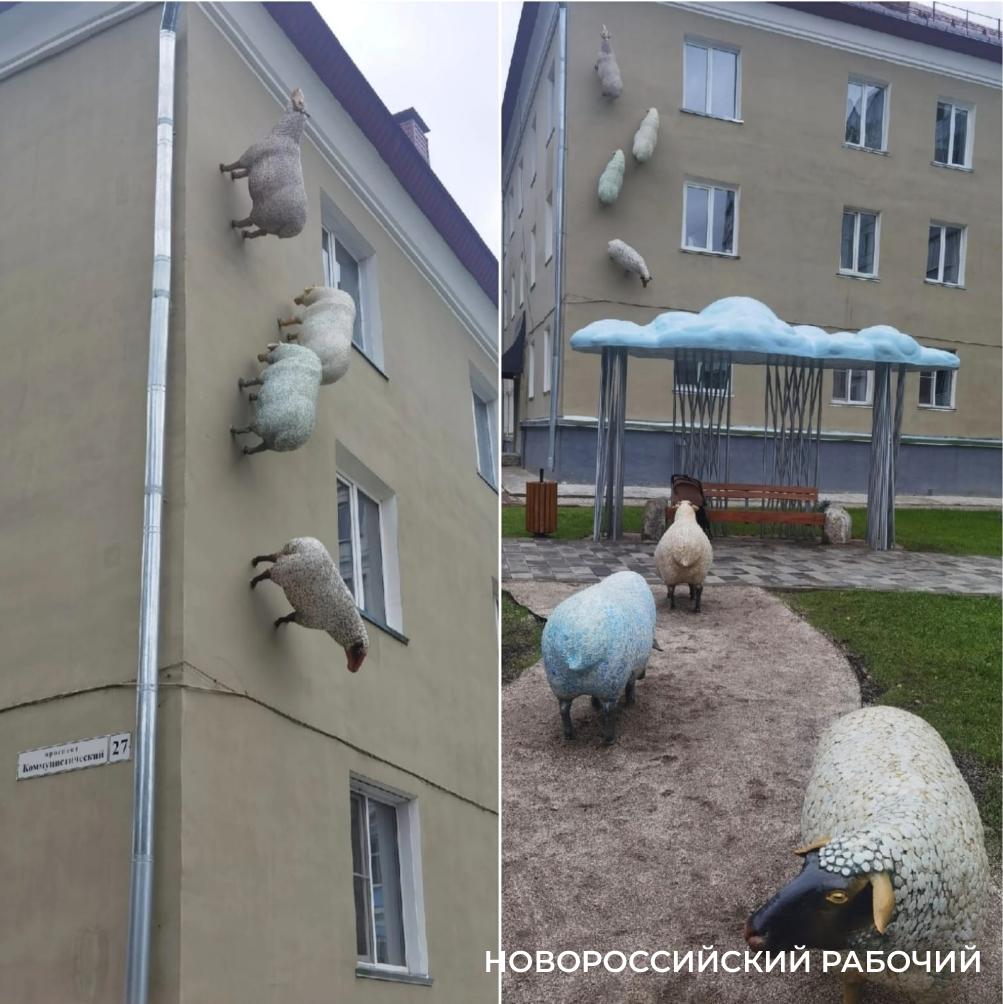 Завершить нашу фотоподборку хотим чем-то позитивным и воздушным. Пусть это будут милые овечки из Горно-Алтайска, которых поместили на фасад дома на проспекте Коммунистическом, 27.