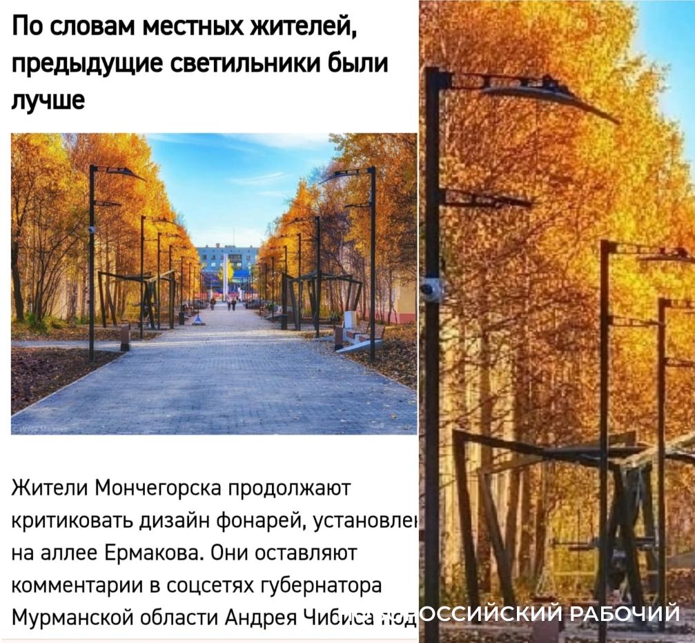 Фонари — «косы» нашли в обновленном дизайнерами парке и жители Мончегорска. Световые опоры своеобразной формой установили там на аллее Ермакова.