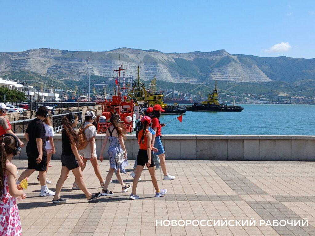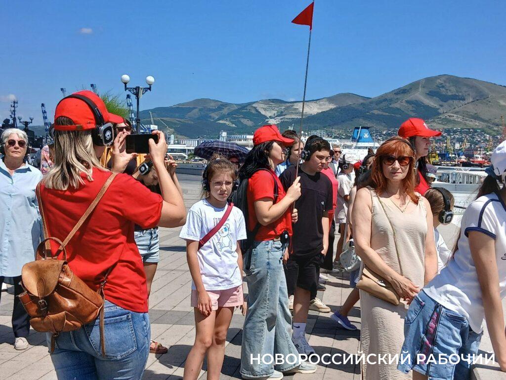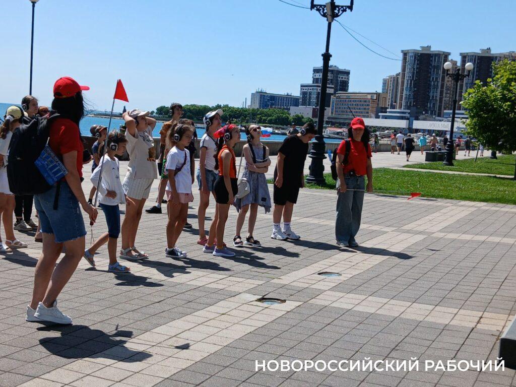 И теперь участники экскурсии становятся соучастниками прогулки брата и сестры, как и журналист «Новороссийского рабочего». На набережной они рассматривают бюст «дяденьки в треугольной шляпе» — Михаила Лазарева. Узнают, что флотоводец причастен и к открытию Антарктиды.  Рассматривают стелу «Морская слава», на верхушке которой бриг «Меркурий» — победитель битвы с турецкими кораблями. Звучит рассказ про крейсер «Михаил Кутузов» и про отцов-основателей Новороссийска, которым установлен памятник. Идет речь о том, что значит название хребта Маркотх — ежевичный, и о том, почему на той стороне бухты появились цемзаводы. Ребята с интересом рассматривают пушки, которые отбивали десант союзников в Крымской войне.