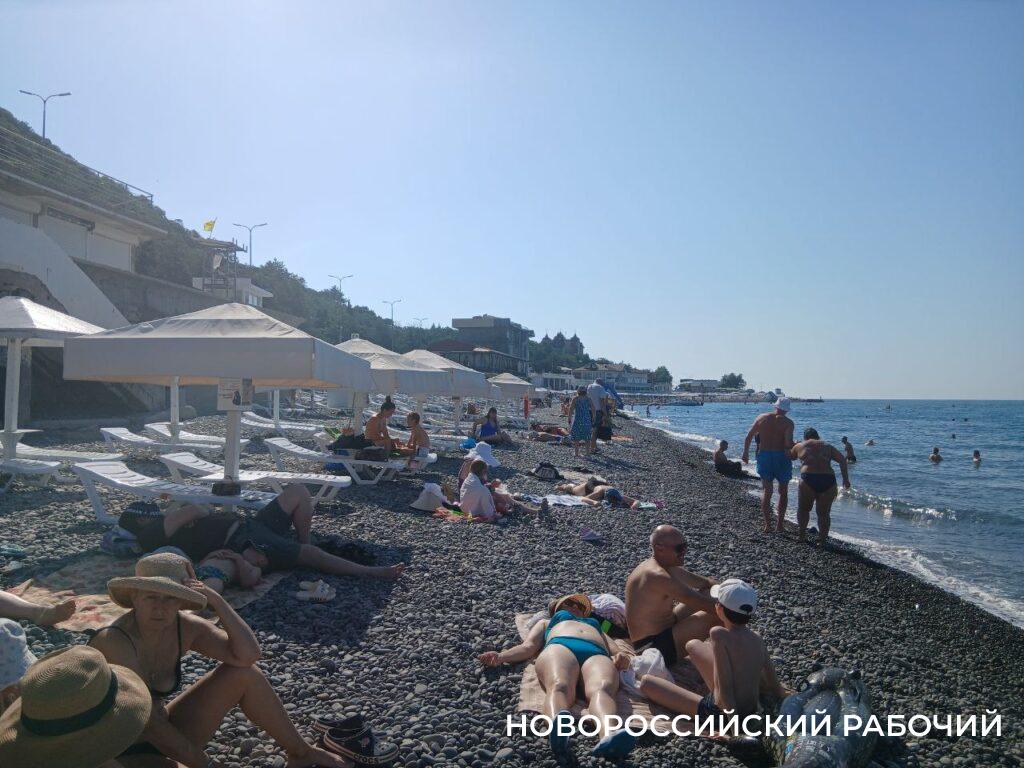 На берегу отдыхающие, придерживающиеся здорового образа жизни, ловят полезный утренний загар. Есть и пострадавшие от жаркого солнца. У некоторых пляжников уже покрасневшая с волдырями кожа. Но они пришли еще за добавкой ультрафиолета.