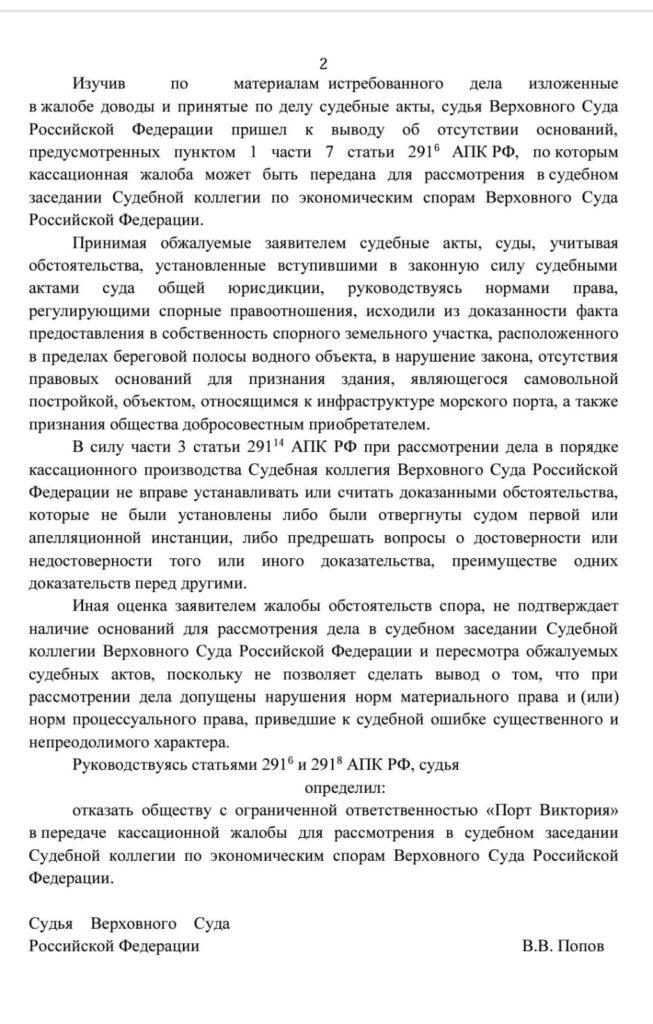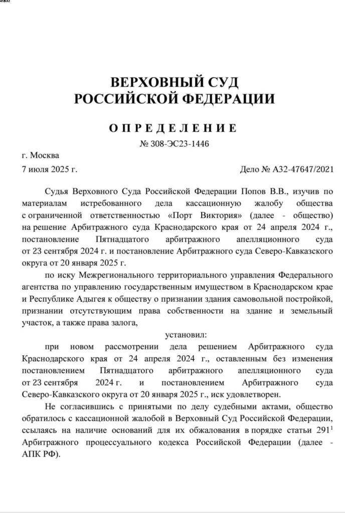 И вот 7 июля 2025 года Верховный суд Российской Федерации определил: отказать ООО «Порт «Виктория» в рассмотрении их кассационной жалобы относительно Волочаевского берега. Судебное заседание было о признании права собственности. Все нижестоящие суды отказали «Порту «Виктории» в праве собственности на участок берега в связи с нарушением законодательства, сообщила «Новороссийскому рабочему» юрист Юлия Литвинова, которая представляла интересы жителей.