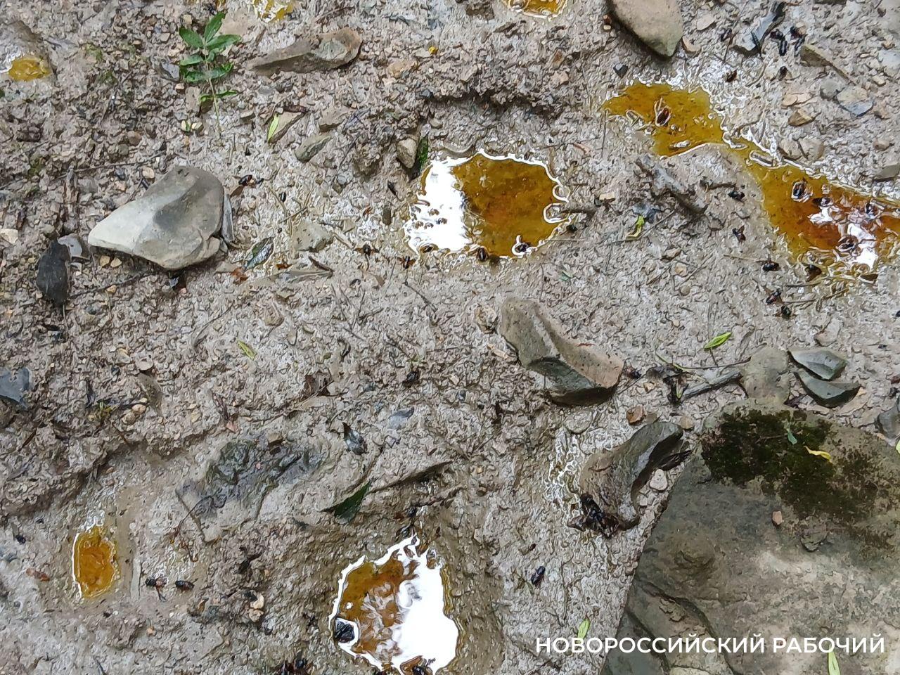 «Новороссийский рабочий» уже рассказывал о странном явлении, которое обнаружилось в пригороде Новороссийска. Примерно две недели назад, когда шли дожди, местные жители вначале обратили внимание на лужи коричневого цвета, а потом увидели маслянистые капли. В местном чате выясняли, нет ли у кого из жителей утечек солярки. Тех, кто отапливает ею дома, в Федотовке по-соседски знают. Но сейчас солярка – дорогое удовольствие, поэтому вряд ли кто-то будет спускать ее в землю и не позаботится о сохранности топлива. Да и домовладения находятся вдалеке от русла. Соответствующих промышленных объектов тоже поблизости нет.