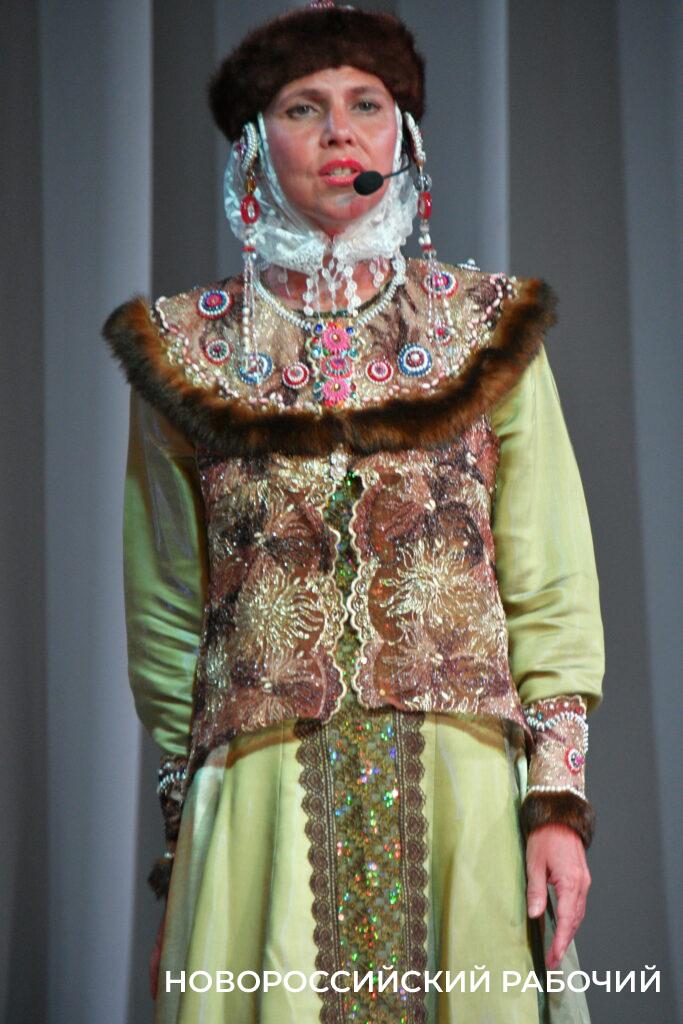 Елена Семёнова (на фото) довольно вдумчиво и кропотливо готовила свой костюм.  Головной убор замужней русской женщины – кичка – выполнен в виде подковки впереди. Это как раз и говорит о том, что она – мама двух сыновей и свекровь. Наряд изготавливали вручную, руководствуясь энциклопедией русской одежды. Есть в нем свои «женские секреты».