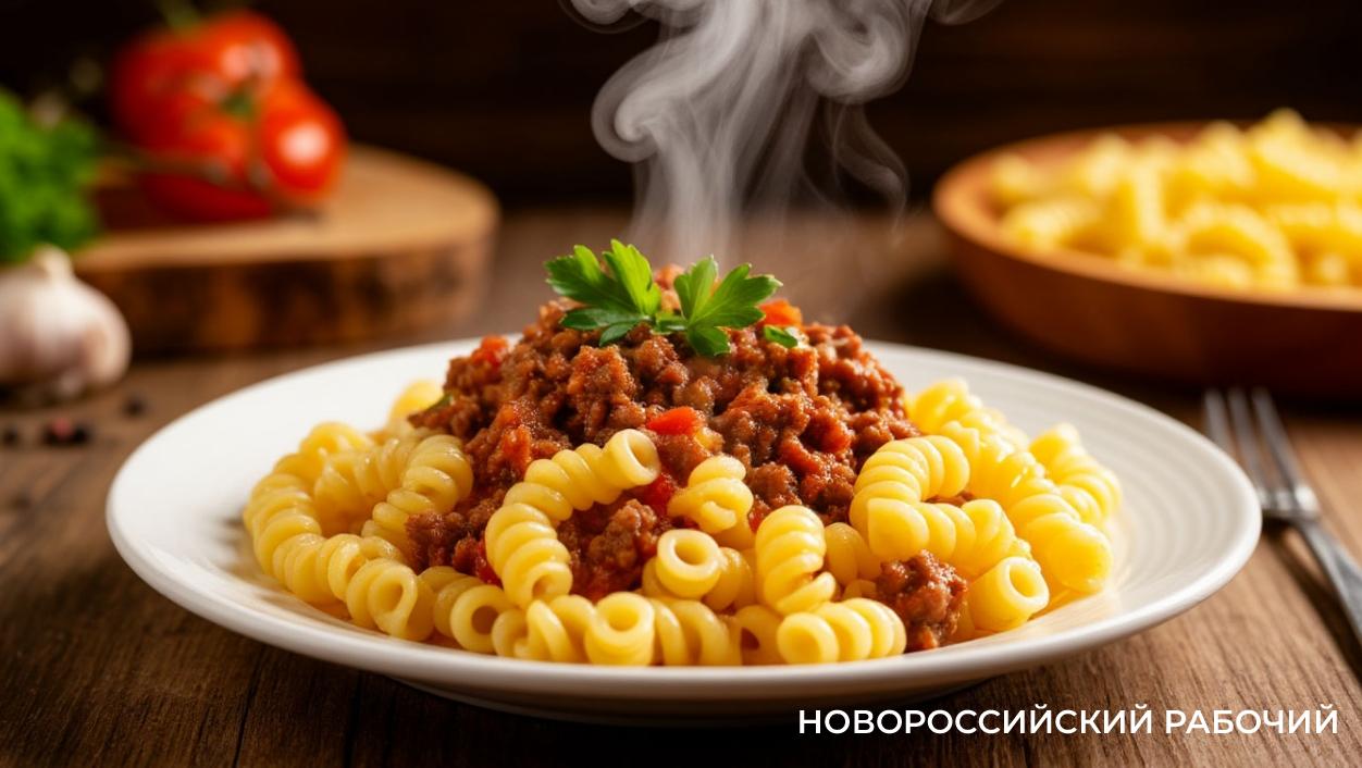 Ингредиенты: макароны – 300 г, фарш мясной (говядина или свинина) – 400 г, лук репчатый – 1 шт., чеснок – 2 зубчика, помидоры – 2 шт. или 200 мл томатного соуса, растительное масло – 2 ст. ложки, соль, перец – по вкусу, свежая зелень (петрушка, базилик) – по желанию.
