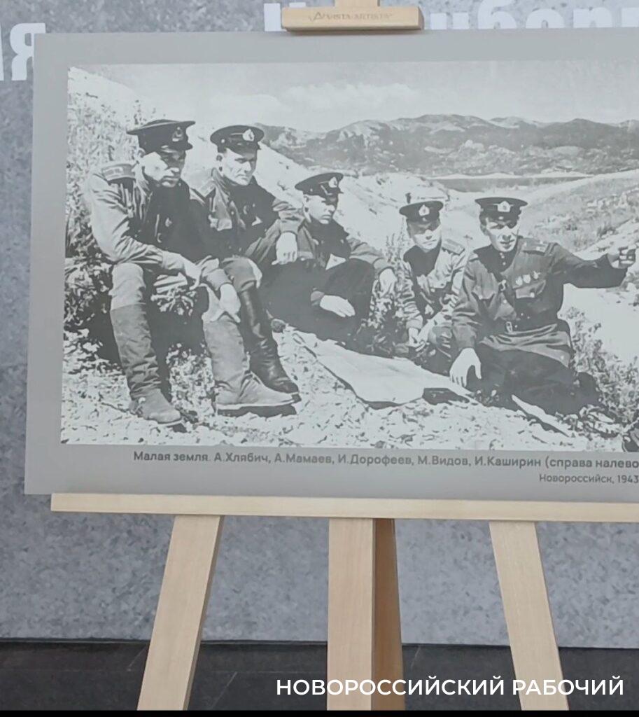На одном из снимков Евгения Халдея группа офицеров 225-й бригады. В центре самый молодой Александр Мамаев. Сразу после высадки на Малую землю в ночь с 5 на 6 февраля он с группой из 36 автоматчиков захватил здание немецкой радиостанции, и там потом разместился штаб куниковцев. Сразу после этого группа по приказу комбрига двинулась на Алексино.