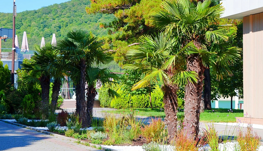 Пока ожидаете начала шоу воды, музыки и света, походите по арт-парку и центральной усадьбе Абрау-Дюрсо. В парке появилась экзотическая локация для фотосессий – 15 шикарных пальм, которые посажены своеобразными «букетами» — по три дерева разной высоты вместе.