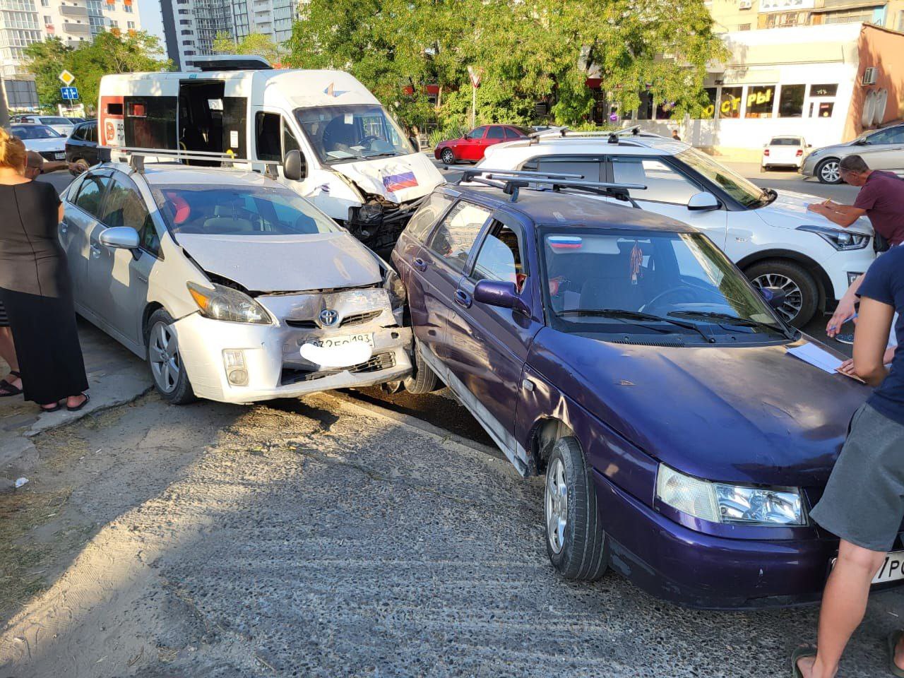 Водитель автомобиля «Фиат», 45 лет, ехал по Мысхакскому шоссе (со стороны улицы Куникова в сторону улицы Волгоградская). В районе дома 71 «А» он не выдержал безопасную дистанцию до впереди движущегося автомобиля «Тойота» под управлением водителя 1987 года рождения и допустил столкновение с ним, в результате чего по инерции автомобиль «Тойота» допустил столкновение с автомобилем «ВАЗ 2111» под управлением водителя 1993 года рождения, после чего автомобиль «Фиат» Fiat столкнулся с автомобилем «Хюндай». В этой аварии «по цепочке» пострадал ребенок, 11 лет.