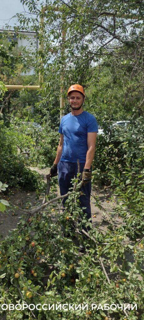 Нет, не себя славить мы отправились на репортаж в самое пекло полдника, а тех людей, кто на посту, несмотря ни на что. А мы на улице Суворовская, 13. Автомобиль спасотряда паркуется во дворе. Тут какое-то ЧП. Дерево алычи сломалось под небывалым весом зрелых фруктов, завалив въезд во двор. Жители дома суетятся, провожая бригаду спасателей и указывая на сухие ветки, которые тоже нужно скорей убрать.