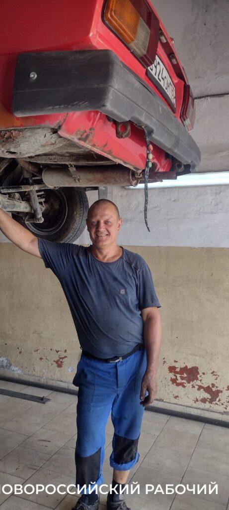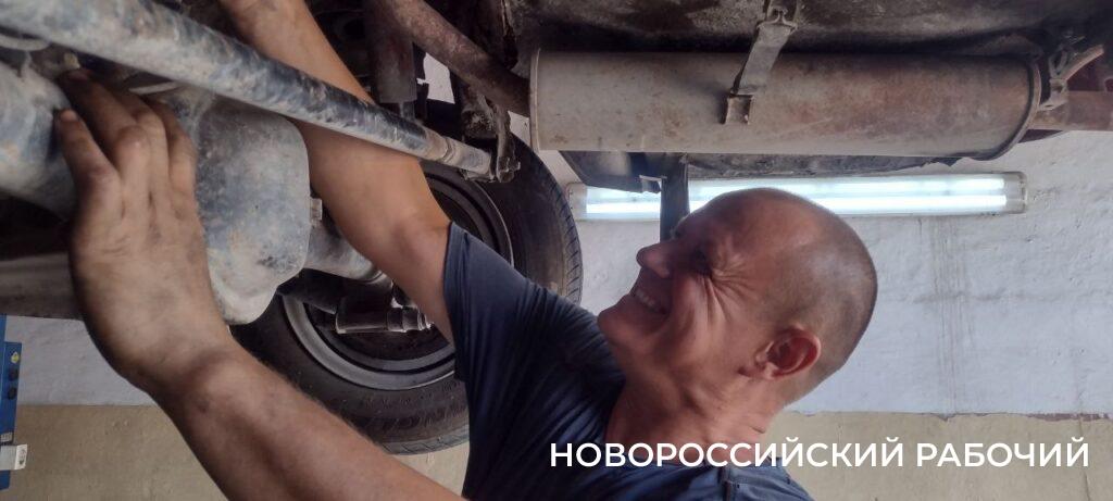 Ой, какая жаркая работа сегодня кипит на СТО на улице Волгоградской! Заезжаю. В боксе, кстати, не так невыносимо, как на улице. Автомеханик Александр Олефир, как терапевт в поликлинике, осматривает ржавое днище поднятой на подъемнике «Жигули».