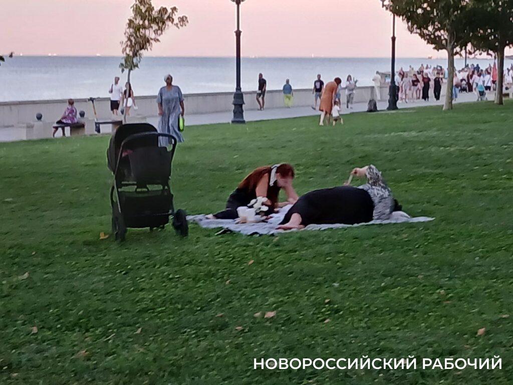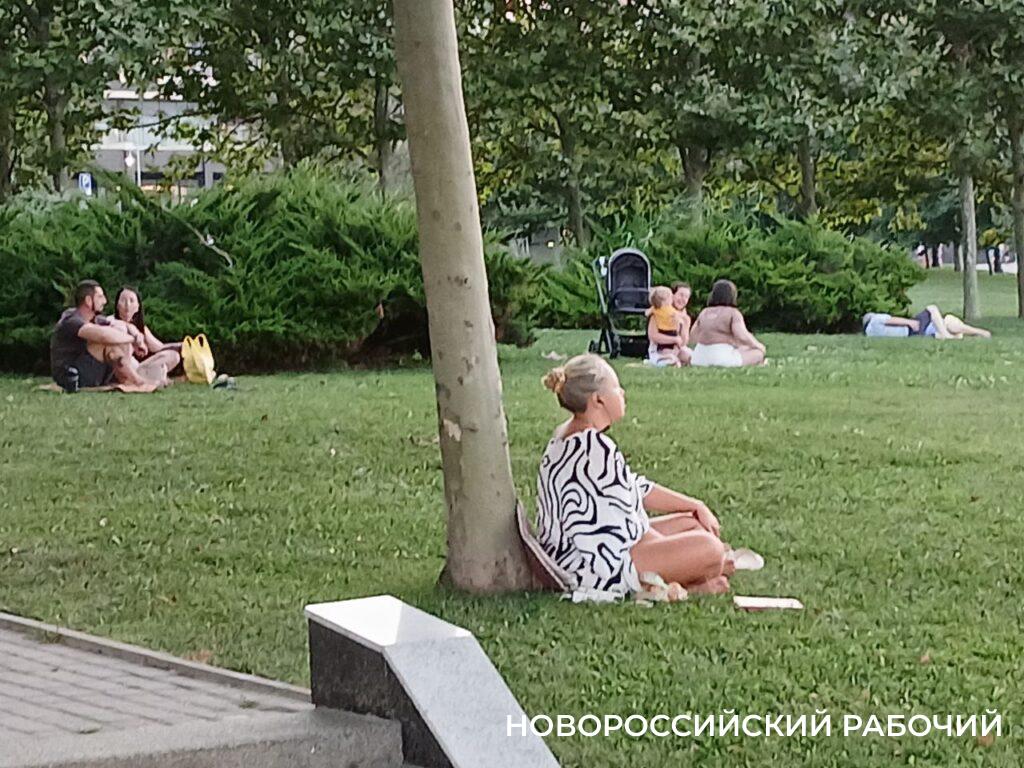 Людей, которые большими и маленькими компаниями выбираются к морю на большое травяное пространство, легко понять. Мест, где в Новороссийске можно пообщаться с природой и в тени деревьев, раз-два и обчелся. А вырваться из каменных многоэтажек очень хочется. Друзья, подруги, семьи приносят коврики или пледы и располагаются на траве.