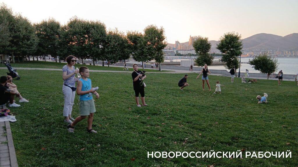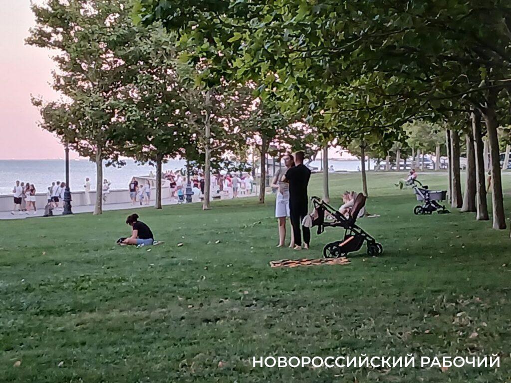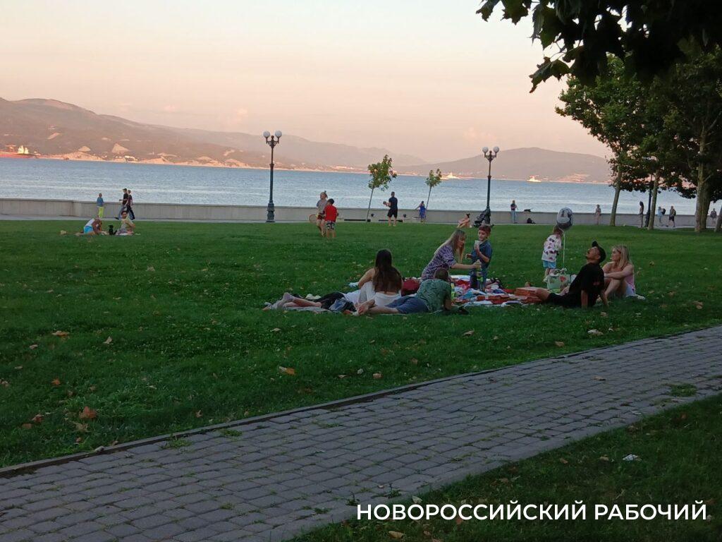Людей, которые большими и маленькими компаниями выбираются к морю на большое травяное пространство, легко понять. Мест, где в Новороссийске можно пообщаться с природой и в тени деревьев, раз-два и обчелся. А вырваться из каменных многоэтажек очень хочется. Друзья, подруги, семьи приносят коврики или пледы и располагаются на траве.